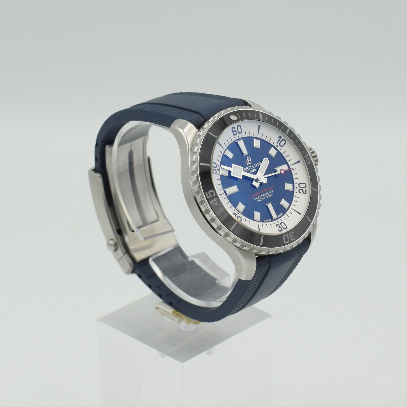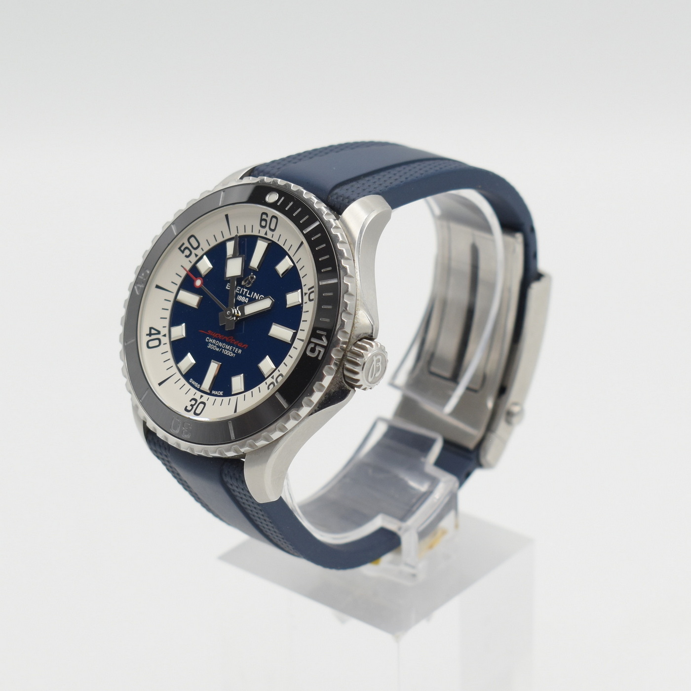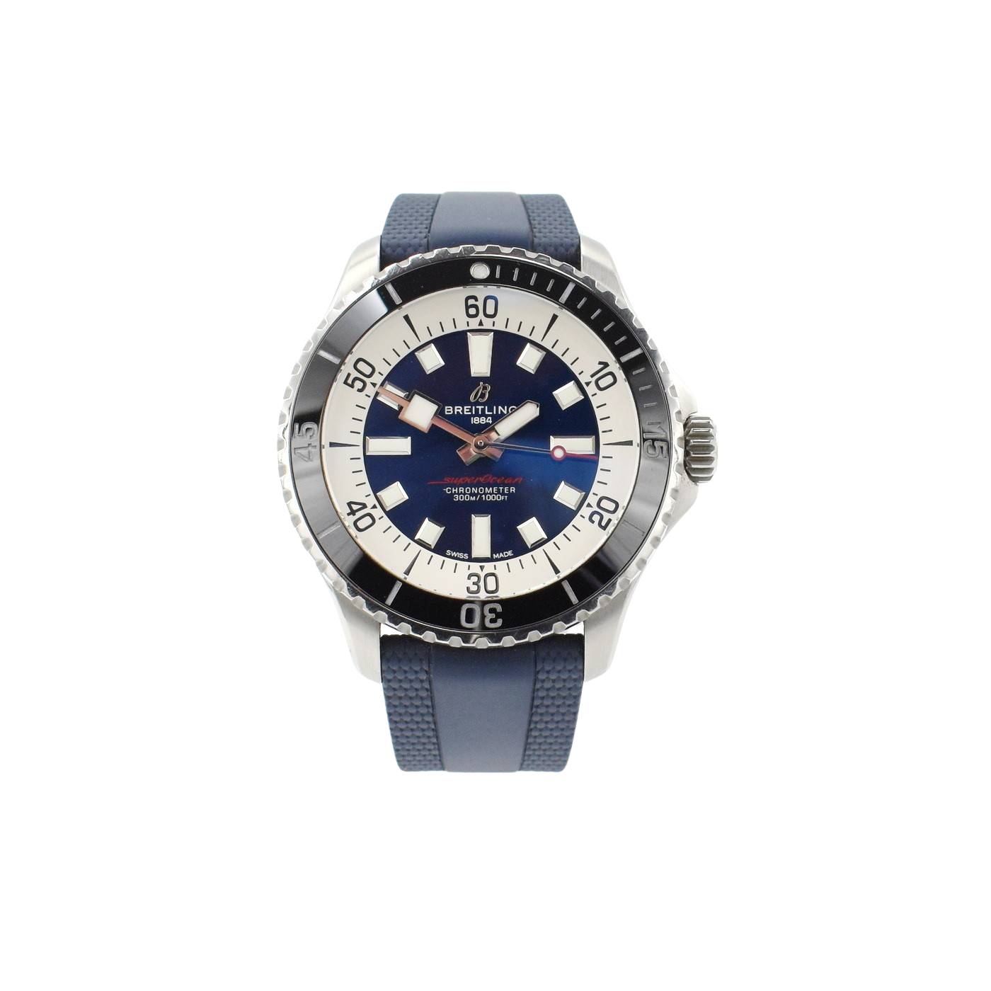 In the 1960s, the new sport of scuba diving was all the rage. For divers, timing was everything, and Breitling set out to give them the most clear-cut dive watch possible by eliminating any feature that didn’t support their lifesaving needs underwater. This pared-down watch was named the Superocean Slow Motion. What remained were clean lines, chunky luminescent indexes, squared-off hands and a high-contrast dial ring, all aimed at maximum legibility. Practical, yes. But what people really fell in love with was the look. The new Superocean retraces the Slow Motion’s celebrated design codes, while adding modern features, like a scratch-proof ceramic-inlayed bezel and brightly colored dials. Broad hands and indexes in a rainbow gradient of luminescent Super-LumiNova® allow for easy readability (and extra fun). The watch is water resistant to 300 m (1,000 ft), as well as being shock-, sand- and saltwater-resistant. The bronze version uses a special alloy that has excellent resistance to corrosion, yet will still develop a subtle patina over time that makes the watch even more unique. The rubber strap comes with a folding clasp that allows for micro-adjustments of up to 15 mm for easy wear over rashies and wetsuits. For safety, the bezel is uni-directional. Best of all, this is no longer strictly a dive watch—surf with it, swim with it, hit the beach bar with it, then wear it out to dinner. The Superocean perfectly balances the nostalgia of its heritage with a fresh new look.Sold with a 12 month guarantee.