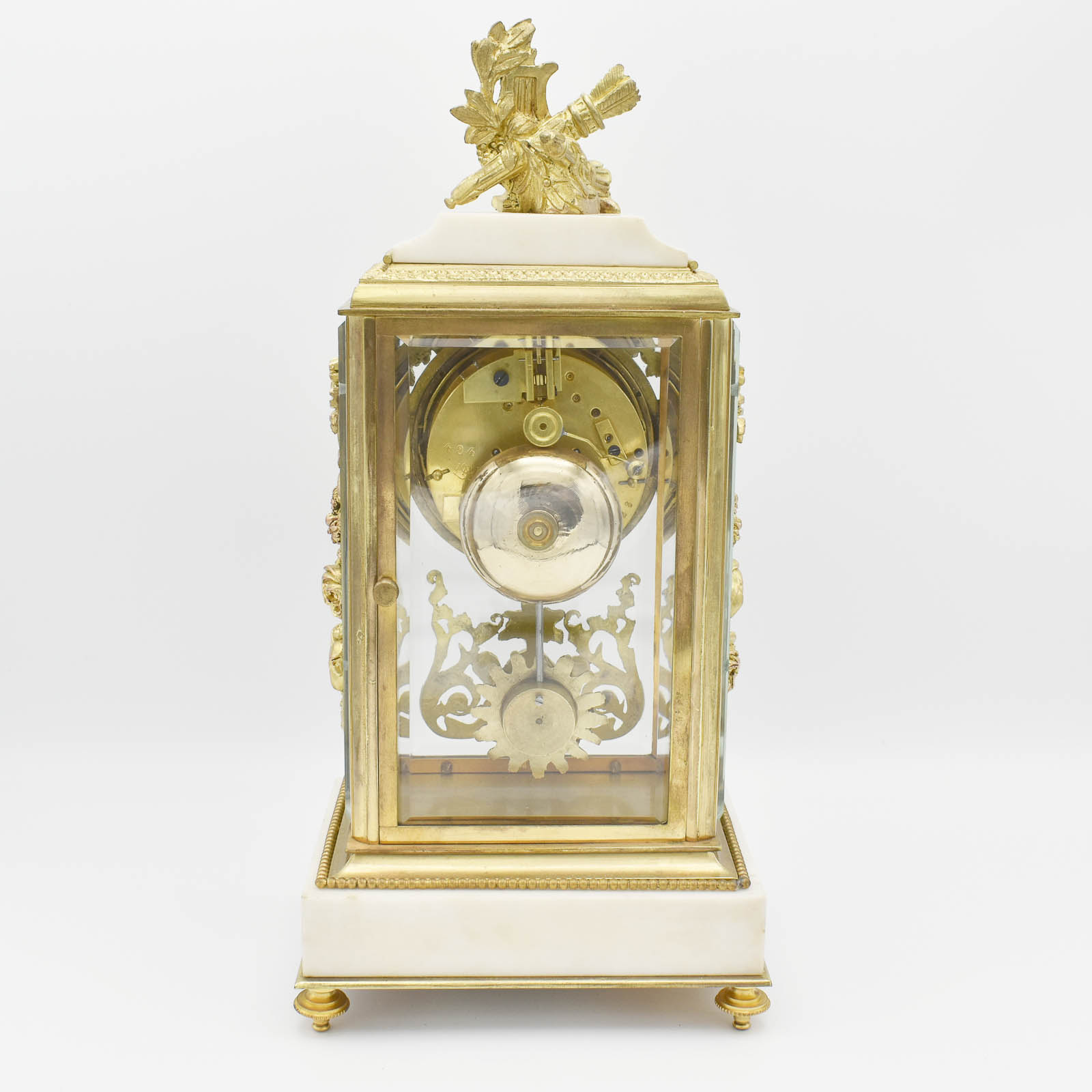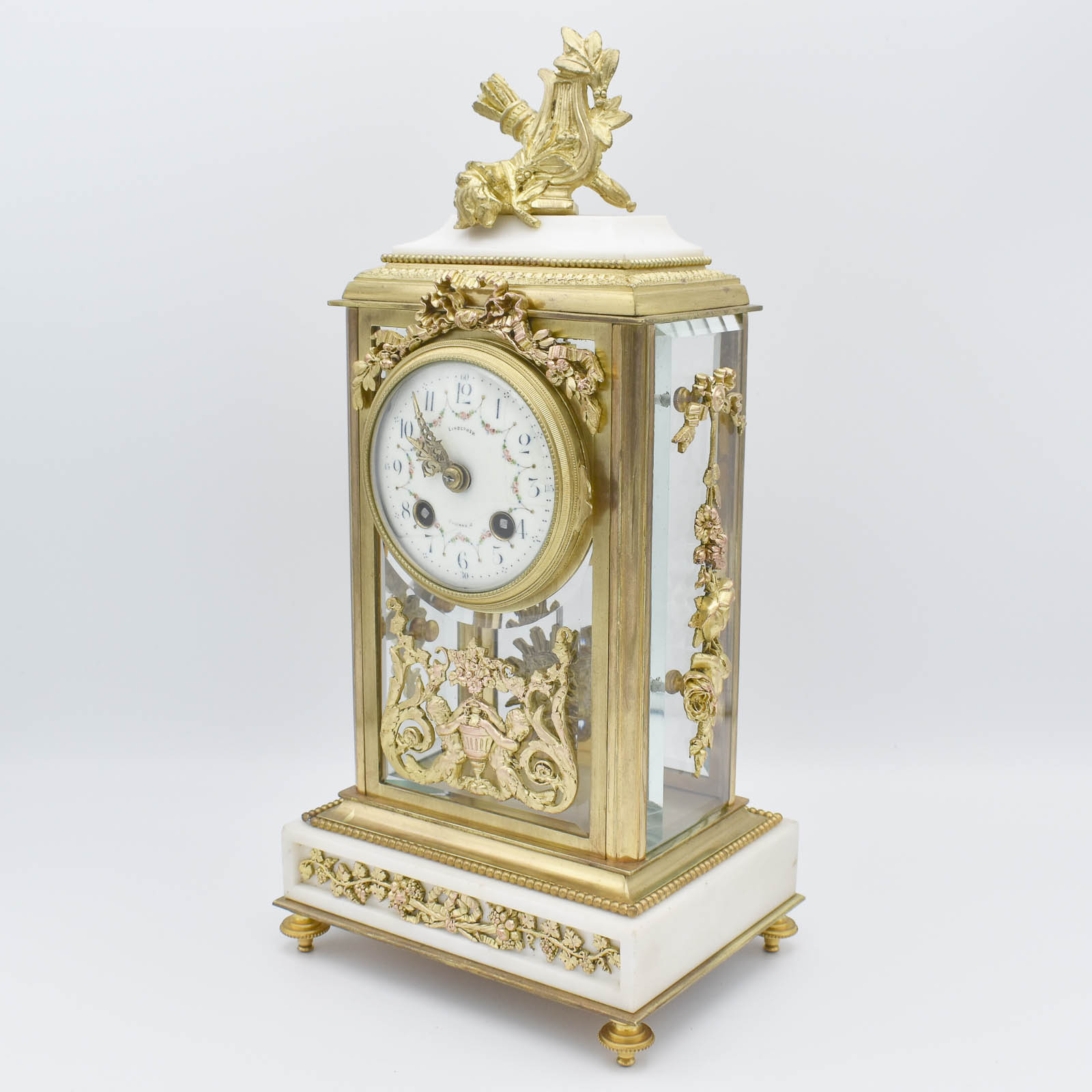 A superb French four glass regulator clock by Charles Vincenti of Paris for the retailers Linderoth of Stockholm. This fine clock strikes the hours and the half hours on a bell. An enamel dial showing Arabic numerals and decorated with garlands of flowers. The French 8 day movement and finely pierced hands. The movement is stamped and numbered with the Vincenti circular stamp. This example is extremely small and rarely appear for sale. Sold with a full 12 month R.T.B Guarantee.