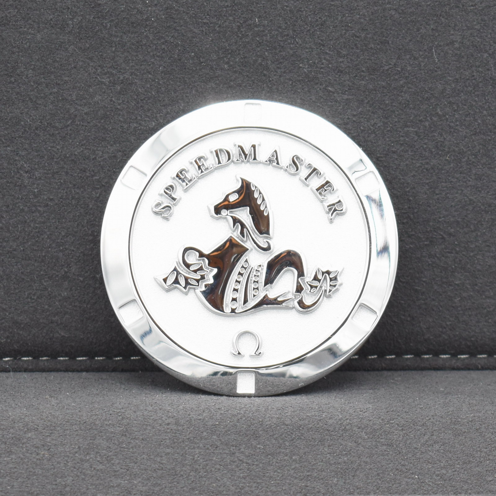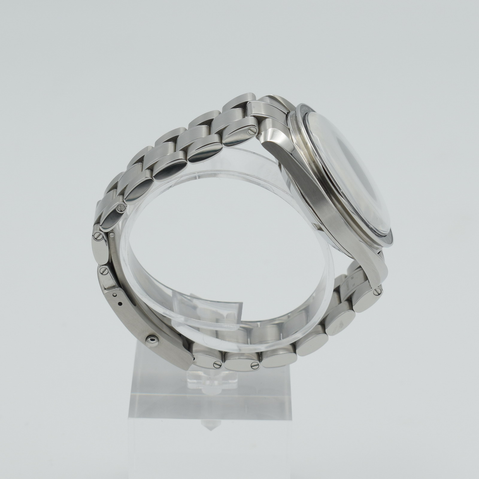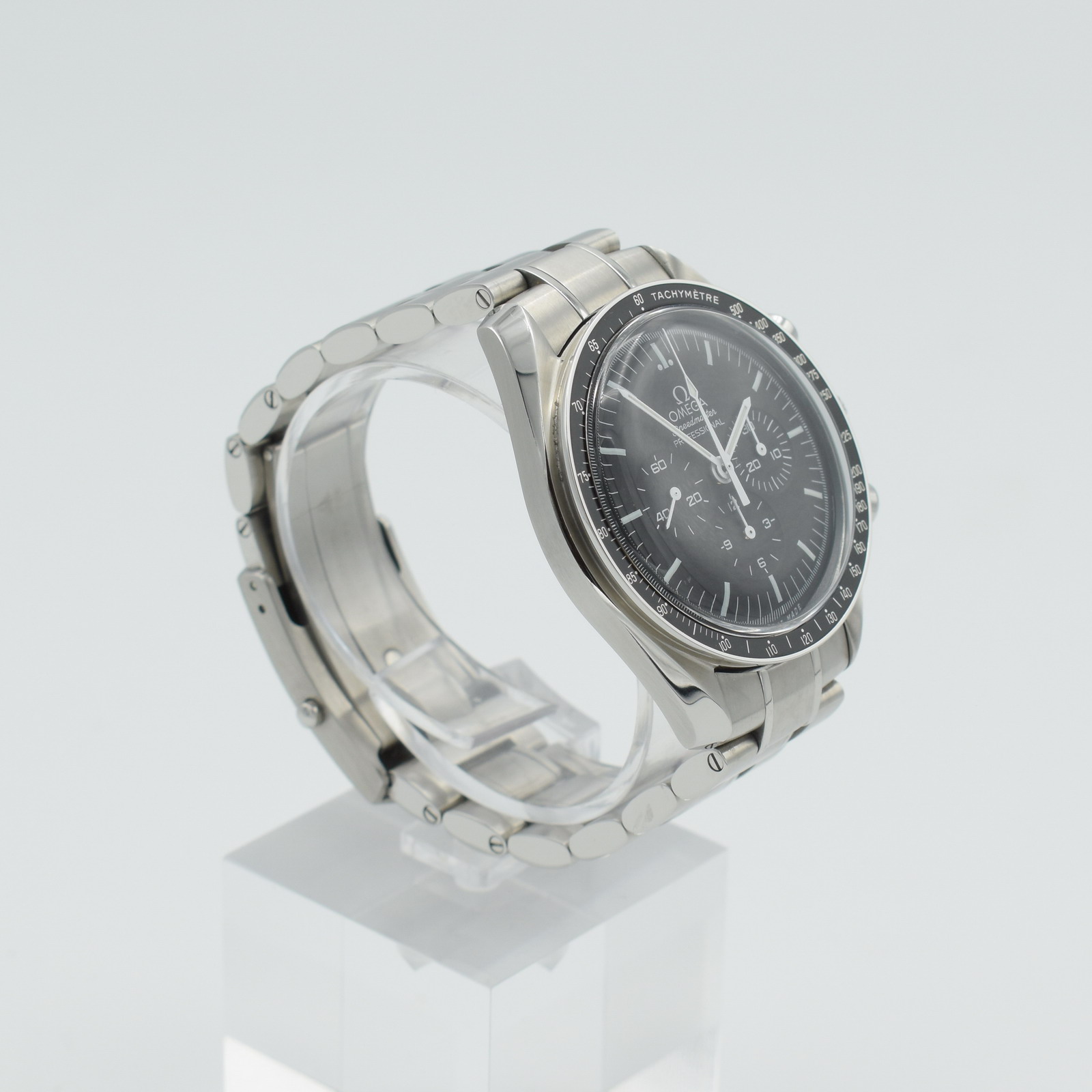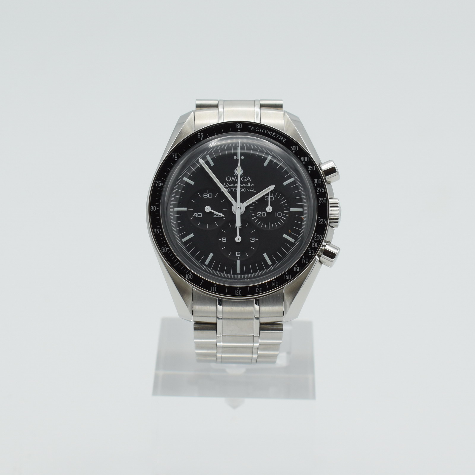 A nearly new Omega Speedmaster in exceptional condition with all boxes and paperwork. This watch even has the original outer cardboard box that Omega ship with it. The watch has unused Nasa double length strap, original Stainless Steel strap and we have supplied a stripped black/grey nato which also looks great on it. The watch carries the remaining 4 years of the Omega 5 year warranty. The strap tool and eye glass. A modern classic.